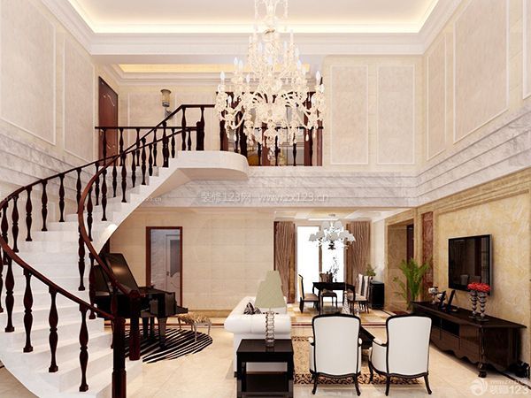 复式楼房装修样板房之客厅装修设计复式楼的客厅装修设计需要有着合理的布局,各个功能区需要有着不同的分隔,保证每一个功能区的完整性和私密性,在客厅的设计中,沙发的位...