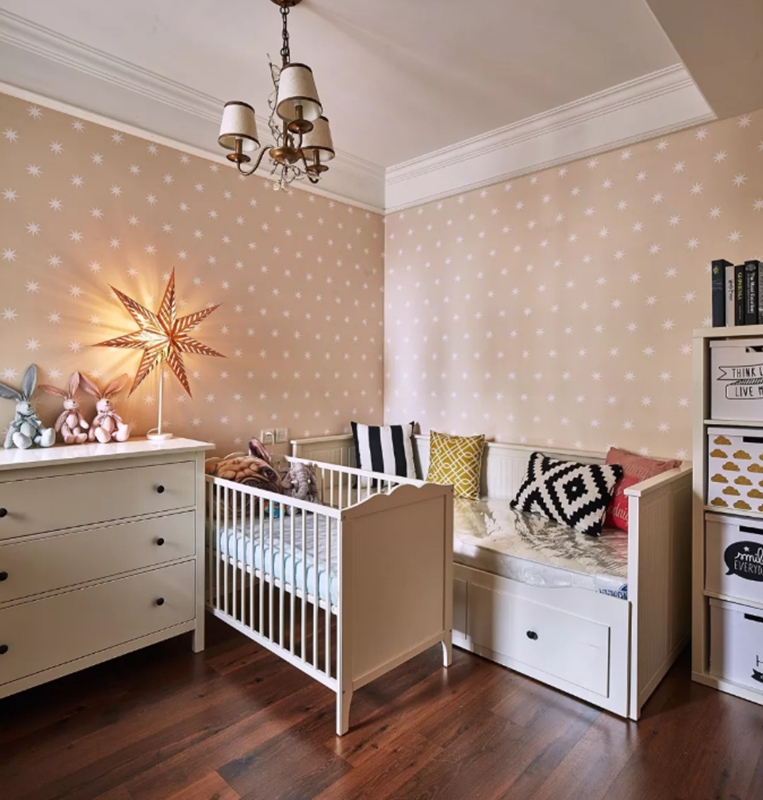 通常把床藏起来后,如果整个卧室不做桌子,用作儿童娱乐室,会让一个人感觉特别宽敞,放地毯、懒沙发等舒适的设计,真的让一个人羡慕。