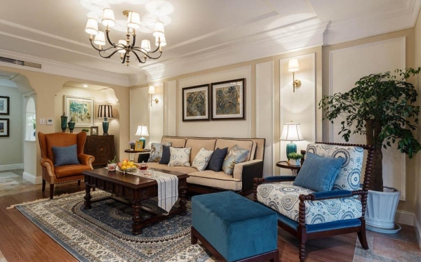2.如果你喜欢追逐美剧,你会经常看到一个场景:一群人围坐在沙发上聊天。客厅不仅是家庭休息的好地方,也是热情好客的好地方。在美式风格中,沙发通常是单人沙发和双人沙发的组合,或者是双人沙发和三人沙发的组合。事实上,双人沙发和三人沙发的组合。事实上,它保留了移动性和空间感,可以想象生活的自由。沙发表面多为布料或皮革,复古气息浓厚,铆钉加细节,强调细腻的特点。