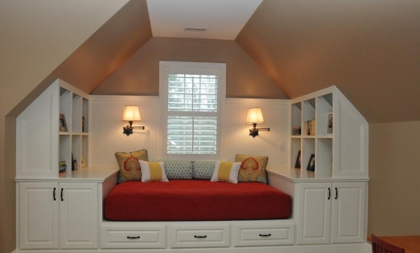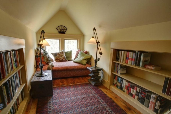 2、阁楼学习装饰设计应坚持透明、明亮的色调,特别是照明布局差,使用科学合理的照明,否则容易影响学习的使用。