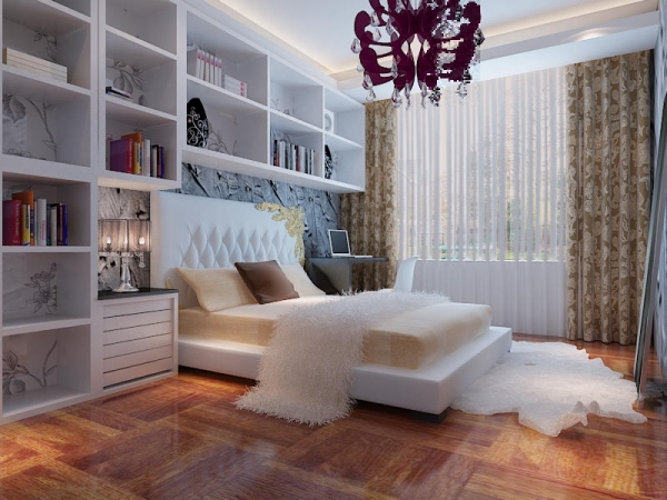 2.卧室风格的全白色家居装饰计划就像踏上白雪公主的梦想。底座上点缀着装饰性的黑色家具,共同构成了更经典的配色,和解了房间的性能。白色卧室融合了温暖的灯光,使卧室的视觉更加干净、明亮、一尘不染,大大扩大了视觉空间。