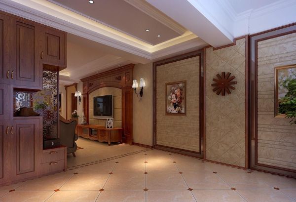 4.设计别墅时,也可以根据自己喜欢的款式类型来决定。比如进门后中间两米设计一个隔断扇,可以隔开空间,透光通风。结合中式庭院的设计风格,客厅位于隔断扇的右侧。根据新年对联从左到右贴的原则,证明房主重视客人的礼仪。