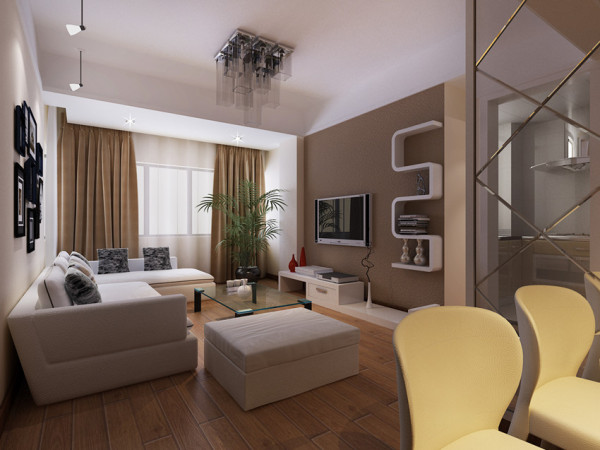 1.在接待客厅和卧室部分,业主主主在装修上主要采用较为柔和的色调,即浅黄色,搭配精致小巧的家具,整体外观温馨时尚。为了避免小空间带来的拥挤,业主选择了开放式的装饰设计,使整个空间的采光和通风都非常好。