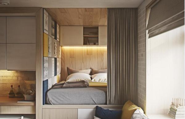 4.购买嵌入式或内藏式储物家具,避免过多的物品存放在外面,阻碍视觉。墙上的架子不应该存放太多。一面墙就够了。